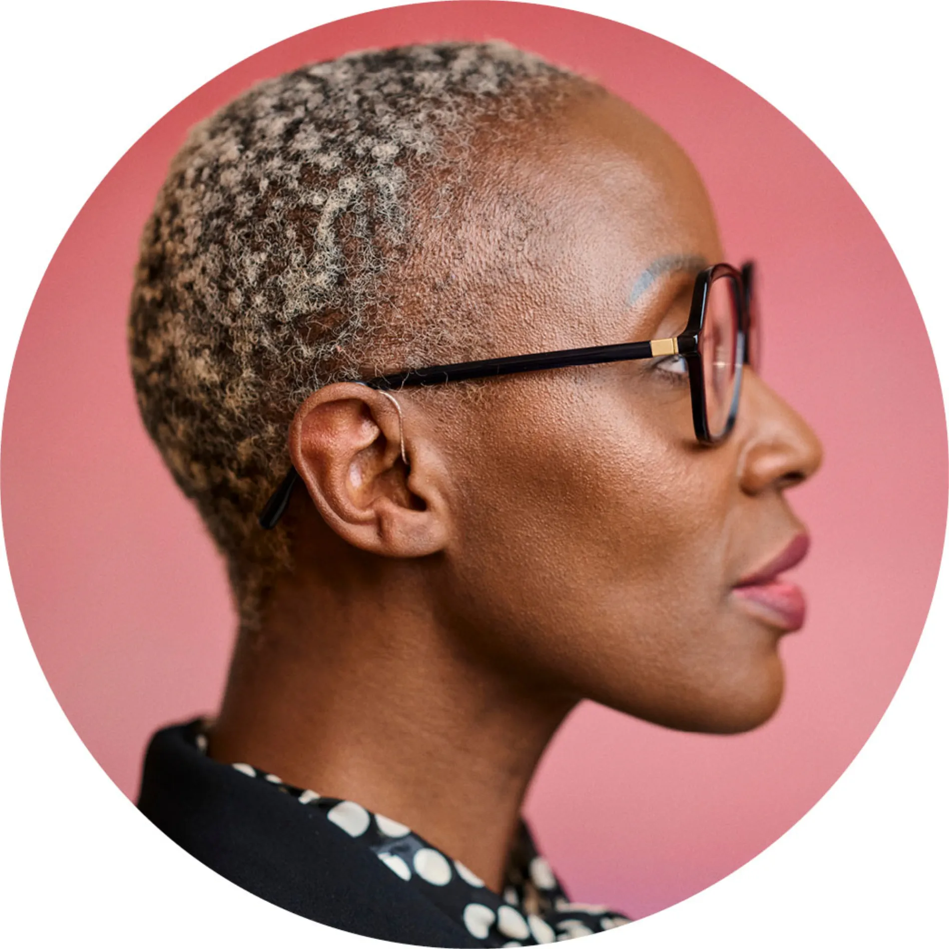 Un hermoso diseño ultradelgado también ocupa menos espacio detrás de la oreja. Incluso puede usarlo cómodamente con gafas.